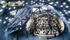 老式的人工天穹采用固定的燈光系統(tǒng)照明白色半球面來模擬,由于靠內(nèi)壁擴散,需將內(nèi)表面進行擴散處理,往往受制于現(xiàn)場人為的施工質(zhì)量,效果很難達到;另外,由于光源只能固定在底部,各點亮度都是靠各組光的疊加產(chǎn)生的亮度分布,每組燈的調(diào)控都會影響全局,很難調(diào)試。本系統(tǒng)采用節(jié)能高效的LED矩陣,特制擴散燈罩、進口定制高透過率擴散膜。將光源布置在透光擴散膜后面,提高了光效,而且由于每組燈的調(diào)控,只影響該組位置的亮度,所以調(diào)試起來很方便,也更精準。