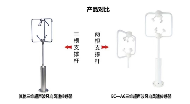 兩根支撐桿對比三根支撐桿的優勢在于當實際測量風向風速時,減小支撐桿產生的風阻,使測量結果更精確。